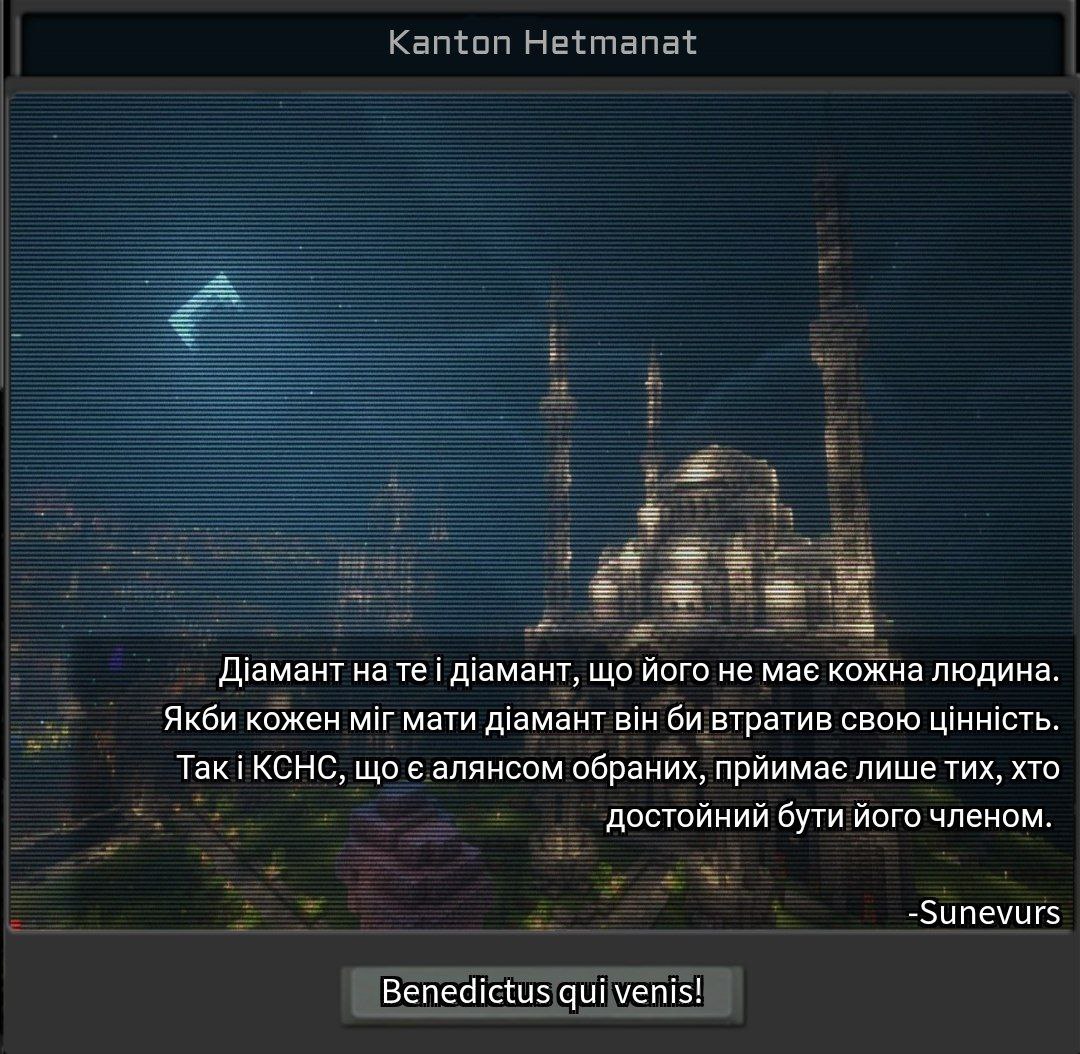 Офіційний коментар Sunevurs:Ad astra per aspera! Benedictus qui venis!